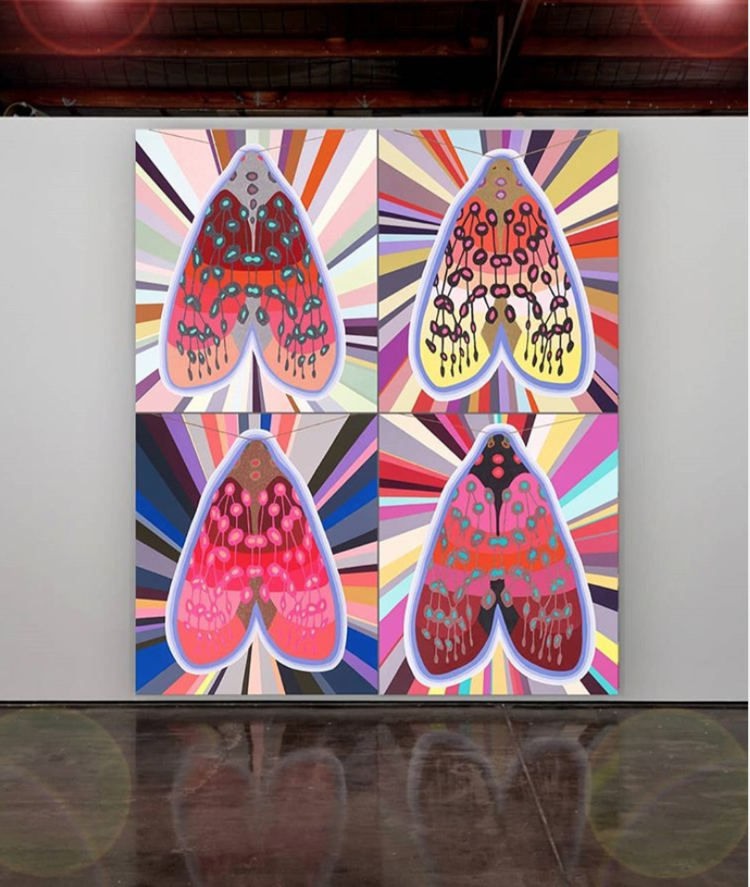 Fletcher’s largest painting to date Celesti'al (Moth)er 3m x 1.5m, acrylic + holographic glitter on linen.